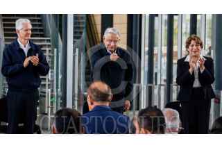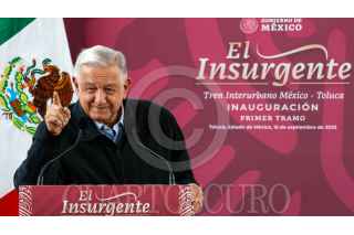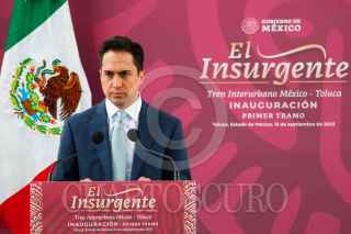 TOLUCA, ESTADO DE MÉXICO. 15SEPTIEMBRE2023.- Andrés Manuel López Obrador, Presidente de México en preside Inauguración de “El Insurgente”, Tren Interurbano México-Toluca, primer tramo en estación Zinacantepec. Acompañan al mandatario: Jorge Mendoza Sánchez, director general del Banco Nacional de Obras y Servicios Públicos (Banobras); Rogelio Ramírez de la O, Secretario de Hacienda y Crédito Público; Jorge Nuño Lara, Secretario de Infraestructura, Comunicaciones y Transportes; ex gobernador del Estado de México, Alfredo del Mazo; Delfina Gómez Álvarez, Gobernadora del Estado de México; Luisa María Alcalde Luján, Secretaria de Gobernación y Rosa Icela Rodríguez Velázquez, secretaria de Seguridad y Protección Ciudadana. FOTO: PRESIDENCIA/CUARTOSCURO.COM