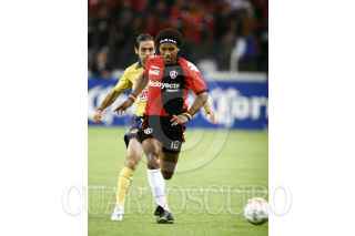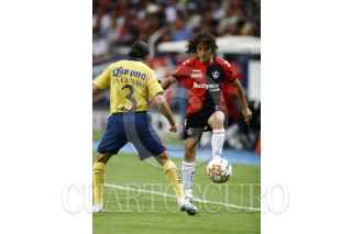 GUADALAJARA, JALISCO, 10MAYO2007.- Viniendo siempre de atrás los rojinegros del Atlas lograron el empate a tres goles en el partido de ida de los cuartos de final de la liga de futbol mexicano, que disputan contra el América esta noche en el estadio Jalisco. En la imagen el delantero atlista Nicolas Olivera. FOTO: JOSÉ MARÍA MARTÍNEZ/CUARTOSCURO.COM