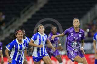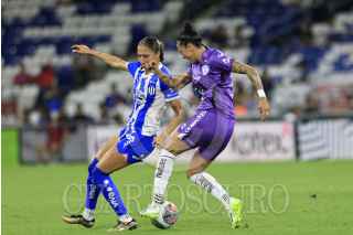 GUADALUPE, NUEVO LEÓN, 15SEPTIEMBRE2023.- Nicole Pérez de Rayadas, se disputa el balón con la española, Jennifer Hermoso del Pachuca, en el estadio BBVA, en la jornada 11 de la Liga Femenil. FOTO: CUARTOSCURO.COM