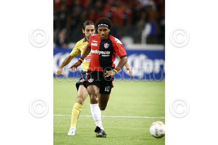 GUADALAJARA, JALISCO, 10MAYO2007.- Viniendo siempre de atrás los rojinegros del Atlas lograron el empate a tres goles en el partido de ida de los cuartos de final de la liga de futbol mexicano, que disputan contra el América esta noche en el estadio Jalisco. En la imagen el delantero atlista Nicolas Olivera. FOTO: JOSÉ MARÍA MARTÍNEZ/CUARTOSCURO.COM