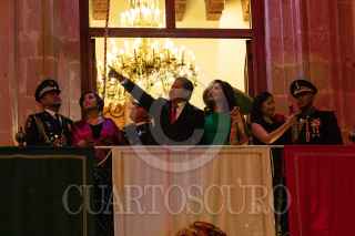 ZACATECAS, ZACATECAS, 15SEPTIEMBRE2023.- Como parte de los festejos por el Día de la Independencia, cientos de personas se dieron cita en la Plaza de Armas para disfrutar de la música, el tradicional “grito de Dolores” por parte del gobernador del Estado, David Monreal Ávila; y los fuegos artificiales que iluminaron el cielo zacatecano. FOTO: ADOLFO VLADIMIR /CUARTOSCURO.COM