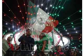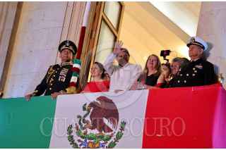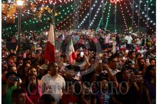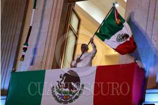 OAXACA, OAXACA, 15SEPTIEMBRE2023.- Oaxaqueños celebraron el grito de independencia en el zócalo de la capital. El gobernador Salomón Jara Cruz durante su primer año de gestión, salió al balcón central del palacio de gobierno para recordar el grito de Dolores y a los héroes independentistas, además mencionó a los pueblos originarios, la cuarta transformación y al presidente Andrés Manuel López Obrador. FOTO: CAROLINA JIMÉNEZ/CUARTOSCURO.COM