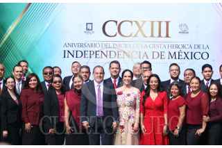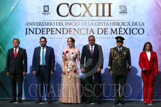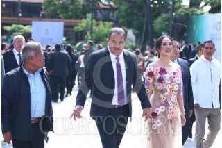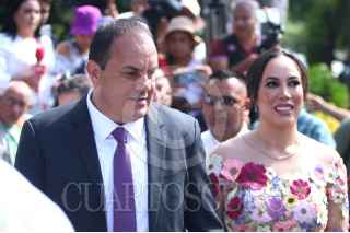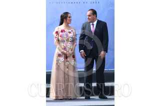 CUERNAVACA, MORELOS, 16SEPTIEMBRE2023.-El gobernador de Morelos, Cuauhtémoc Blanco Bravo y su esposa Natalia Resende Moreira, durante el evento oficial por la conmemoración del 213 aniversario del inicio de la gesta de la Independencia. FOTO: MARGARITO PÉREZ RETANA / CUARTOSCURO.COM