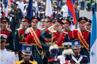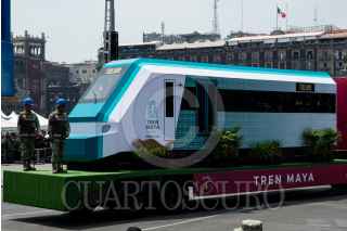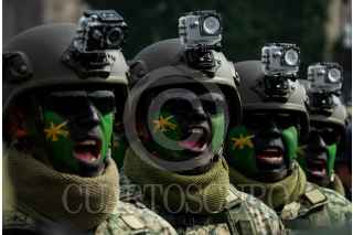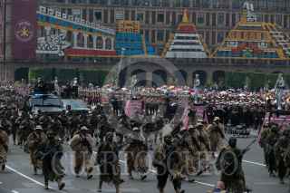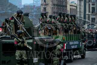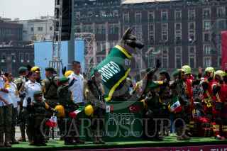 CIUDAD DE MÉXICO, 16SEPTIEMBRE2023.- Aspectos del Desfile Cívico Militar con motivo del 213 Aniversario del Inicio de la Independencia de México, así como de los 200 años de creación del Heroico Colegio Militar. Dentro de los carros alegóricos destacó una estatua del perro Proteo, que perdió la vida durante la misión humanitaria en Turquía tras el terremoto, así como un convoy del Tren Maya. Fueron más de mil elementos de la SEDENA, Marian y Guardia Nacional quienes desfilaron frente al presidente Andrés Manuel López Obrador y los miles de espectadores en las calles del Centro Histórico y vialidades principales de la capital. FOTO: GALO CAÑAS/CUARTOSCURO.COM