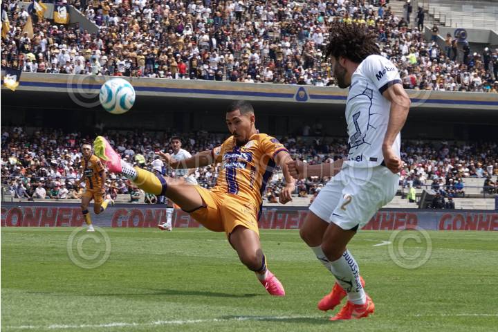 CIUDAD DE MÉXICO, 17SEPTIEMBRE2923.- Ricardo Chávez, lateral derecho del Atlético de San Luis, César Huerta, extremo izquierdo de los Pumas, disputaron el balón durante la Jornada 8 en el Estadio Olímpico Universitario. FOTO: GRACIELA LÓPEZ /CUARTOSCURO.COM