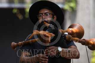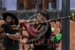 CIUDAD DE MÉXICO, 17SEPTIEMBRE2023.- Integrantes de Basiliscus ofrecen su música Medieval Folk en los camellones de avenida Reforma, la cual se toca principalmente con gaitas y tambores, instrumentos que le dan su particular sonido. FOTO: MOISÉS PABLO/CUARTOSCURO.COM