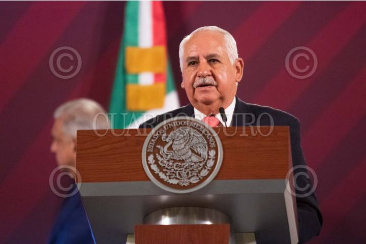 CIUDAD DE MÉXICO, 18SEPTIEMBRE2023.- Manuel Gómez Parra, director general de Desarrollo Ferroviario de la SiCT, durante la mañanera en la que hablo de los avances del Tren Interurbano. FOTO: MOISÉS PABLO/CUARTOSCURO.COM