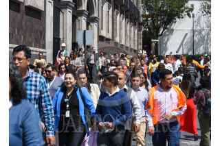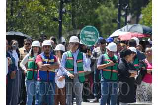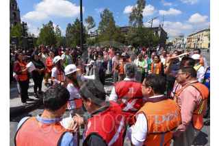 TOLUCA, ESTADO DE MÉXICO, 19SEPTIEMBRE2023.- Como parte del Segundo Simulacro 2023 Las alarmas de alerta sísmica sonaron en la capital mexiquense a las 11:00 hrs iniciando la evacuación de edificios como Palacio de Gobierno, Cámara de Diputados, Poder Judicial y el Ayuntamiento de Toluca, concentrándose en la Plaza de los Mártires, las brigadas de PC revisaron los inmuebles para que los trabajadores pudieran regresar a sus labores cotidianas. FOTO: CRISANTA ESPINOSA AGUILAR /CUARTOSCURO.COM