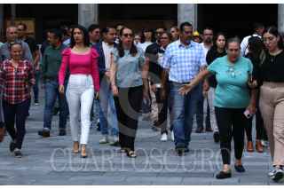 CUERNAVACA, MORELOS 19SEPTIEMBRE2023.- Burócratas del gobierno del Estado de Morelos se concentran en un punto de reunión en la Plaza de Armas durante el Simulacro Nacional 2023. Mas de 500 trabajadores del Palacio de Gobierno participaron en el ejercicio para concientizar de la peligrosidad de los sismos, evacuaron su lugar de trabajo en dos minutos y seis segundos. FOTO: MARGARITO PÉREZ RETANA / CUARTOSCURO. COM