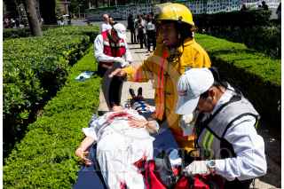 CIUDAD DE MÉXICO, 19SEPTIEMBRE2023.- Miles de personas ocuparon las aceras de Paseo de la Reforma para participar en el Macro Simulacro con motivo de los Sismo de 1985 y 2017. A fin de crear conciencia y una cultura de la protección civil ante las catástrofes. FOTO: GALO CAÑAS/CUARTOSCURO.COM