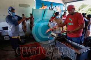 PROGRESO, YUCATÀN, 19SEPTIEMBRE2023.- Pescadores del puerto de altura de Yucalpetén aseguran que la pesca del pulpo maya ha sido buena hasta el momento, destacan que el precio se haya mantenido entre 70 y 80 pesos el kilogramo. Además de esta especie también capturan los pescados mero, negrillo, boquinete y langosta, entre otros. FOTO: MARTÌN ZETINA/CUARTOSCURO.COM