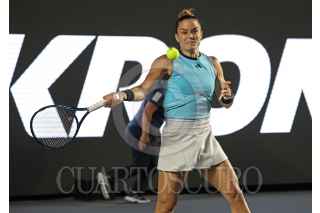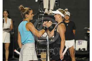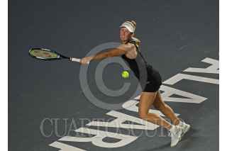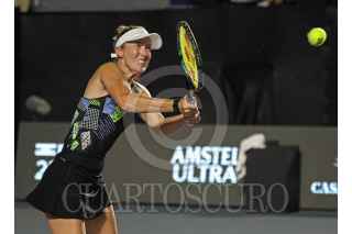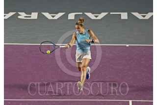 ZAPOPAN, JALISCO, 19SEPTIEMBRE2023.- Esta noche en las instalaciones del Centro Panamericano de Tenis, en donde se lleva a cabo el Torneo Guadalajara Open WTA 1000, se enfrentaron en partido eliminatorio las tenistas Storm Hunter (AUS) vs Maria Sakkari (USA), en donde al final la tenista Griega se llevo la victoria. En la imagen se observa a la tenista Maria Sakkari, durante el desarrollo del juego. FOTO: FERNANDO CARRANZA GARCIA / CUARTOSCURO.COM