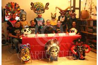 CUERNAVACA, MORELOS, 20SEPTIEMBRE2023.- Autoridades de la Secretaria de Cultura de Morelos acompañados de promotores culturales del municipio de Zacualpan ofrecieron conferencia de prensa para anunciar la Mojiganga 2023, fiesta en honor de la Virgen del Rosario, que se llevara a cabo el próximo domingo en el municipio del oriente del estado. Se espera que más 35 mil personas asistan a disfrutar del desfile de comparsas ataviadas con vistosos disfraces y grandes máscaras, la temática de este año son los animales fantásticos. FOTO: MARGARITO PÉREZ RETANA / CUARTOSCURO.COM