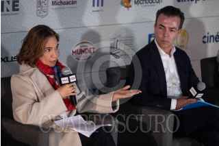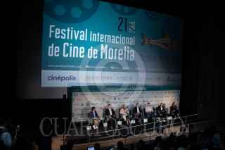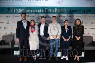 CIUDAD DE MÉXICO, 20SEPTIEMBRE2023.- Ramón Ramírez Guzmán director de RRPP y Fundación Cinépolis; José Miguel Álvarez Ibargüengoitia, Coordinador Técnico del IMCINE; Daniela Michel, Directora General del Festival Internacional de Cine de Morelia; Alejandro Ramírez Magaña, Presidente del Festival Internacional de Cine de Morelia; Julio César Blasina, Director de producción artística y desarrollo cultural de Michoacán; Lucero Rocío García, subdirectora de Desarrollo Turístico de Michoacán y Fátima Chávez Alcaraz, Secretaría de Cultura de Morelia durante la conferencia de prensa donde se dieron a conocer los avances de programación del Festival Internacional de Cine de Morelia en su edición numero 21. FOTO: EDGAR NEGRETE LIRA/CUARTOSCURO.COM
