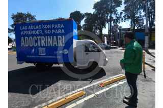 TOLUCA, ESTADO DE MÉXICO, 20SEPTIEMBRE2023.- Integrantes de asociaciones civiles y Citizen Go pusieron en marcha la unidad móvil que recorrerá la ciudad de Toluca con el lema “Las aulas son para aprender, ¡no para adoctrinar!”, quienes también se encuentran recabando firmas contra “el adoctrinamiento ilegal”, hicieron un llamado a padres de familia y maestros a unirse a esta causa. FOTO: CRISANTA ESPINOSA AGUILAR /CUARTOSCURO.COM