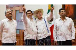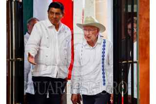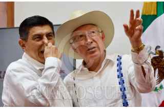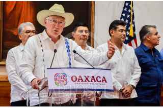 OAXACA, OAXACA. 20SEPTIEMBRE2023.- EstA tarde el gobernador de Oaxaca, Salomón Jara Cruz realizó una conferencia de prensa con el embajador de Estados Unidos en México, Ken Salazar y el presidente del Consejo Coordinador Empresarial, Francisco Cervantes, en donde informaron sobre la firma del convenio de colaboración “Amigos por Oaxaca” que plantea acciones de desarrollo y bienestar en torno al Corredor Interoceánico del Istmo de Tehuantepec. FOTO: CAROLINA JIMÉNEZ/CUARTOSCURO.COM