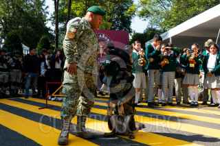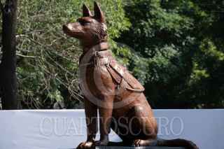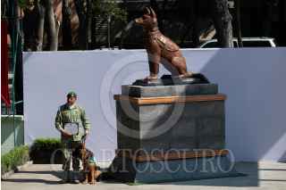 CIUDAD DE MÉXICO, 21SEPTIEMBRE2023.- Luis Cresencio Sandoval, secretario de la Defensa Nacional (SEDENA), encabezó la develación de la escultura en honor al perro Proteo, fallecido durante las labores humanitarias por parte del ejército mexicano en el terremoto de Turquía. FOTO: GALO CAÑAS/CUARTOSCURO.COM