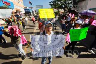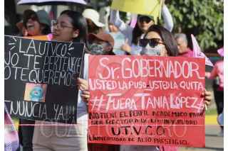OAXACA, OAXACA, 21SEPTIEMBRE2023.- Estudiantes y trabajadores despedidos de la Universidad Tecnológica de los Valles Centrales de Oaxaca (UTVCO) marcharon en la capital de Oaxaca para exigir la reincorporación de 14 trabajadores docentes y administrativos que fueron despedidos. El conflicto se originó cuando trabajadores conformaron un sindicato, tras lo cual vino el despido y este hecho ha retraso el inicio de las actividades en la institución educativa. Los manifestantes afirmaron además qué hay 51 profesores a quienes no se les han asignado horas clase. El conflicto afecta a más de 1500 alumnos. FOTO: CAROLINA JIMÉNEZ/CUARTOSCURO.COM