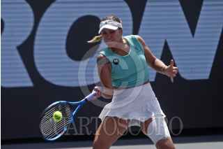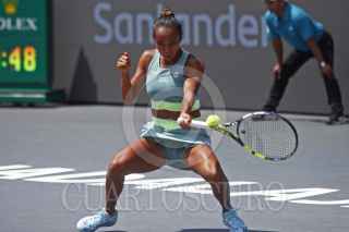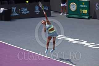 ZAPOPAN, JALISCO, 21SEPTIEMBRE2023.- Esta tarde en las instalaciones del Centro Panamericano de Tenis, en donde se lleva a cabo el Torneo Guadalajara Open WTA 1000, se enfrentaron en partido eliminatorio las tenistas Leylah Fernández (Canada) vs Sofía Kenin (USA), en donde al final la tenista Estadounidense se llevo la victoria. En la imagen se observa a la tenista Leylah Fernández, durante el desarrollo del juego. FOTO: FERNANDO CARRANZA GARCIA / CUARTOSCURO.COM