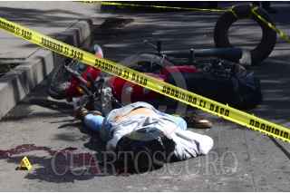 CIUDAD DE MÉXICO, 22SEPTIEMBRE2023.- Un hombre murió tras ser arrollado por un camión portón tras caer de su motocicleta sobre avenida Canal de Chalco y calle 13, colonia José Lopez Portillo de la alcaldía Iztapalapa. FOTO: ROGELIO MORALES/CUARTOSCURO.COM