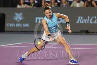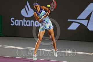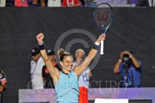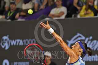 ZAPOPAN, JALISCO, 22SEPTIEMBRE2023.- Esta tarde en las instalaciones del Centro Panamericano de Tenis, en donde se lleva a cabo el Torneo Guadalajara Open WTA 1000, se enfrentaron en partido de semifinal las tenistas Caroline García (Francia) vs María Sakari (Grecia), en donde al final la tenista Griega se llevo la victoria. En la imagen se observa a la tenista Caroline García, durante el desarrollo del juego. FOTO: FERNANDO CARRANZA GARCIA / CUARTOSCURO.COM