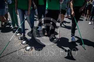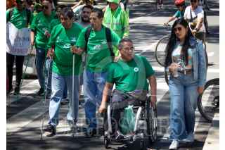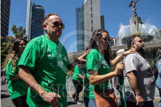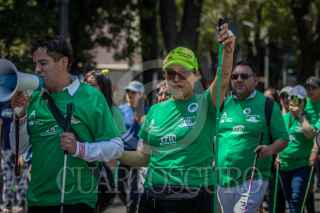 CIUDAD DE MÉXICO, 24SEPTIEMBRE2023.- Bajo la consigna “Siempre visibles, nunca invisibles” personas de todas edades con discapacidad visual llevaron a cabo la segunda Caminata verde en la Ciudad desde la Diana Cazadora recorriendo la Avenida Reforma hasta las escalinatas del Ángel de la Independencia en marco de la conmemoración del Bastón Verde como instrumento de orientación y movilidad para las personas con baja visión que se celebra el 26 de septiembre y también el día internacional de la retinitis pigmentaría. FOTO: ANDREA MURCIA /CUARTOSCURO.COM