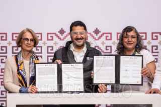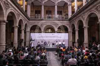 CIUDAD DE MÉXICO, 24SEPTIEMBRE2023.- Martí Batres Guadarrama, jefe de Gobierno de la Ciudad y Teresa Guadalupe Reyes, directora del Instituto Nacional Para la Educación de los Adultos (INEA)encabezaron firma de convenio entre el Gobierno de la Ciudad y el INEA. EL evento se llevó a cabo en el Antiguo Palacio de Ayuntamiento. FOTO: ANDREA MURCIA /CUARTOSCURO.COM