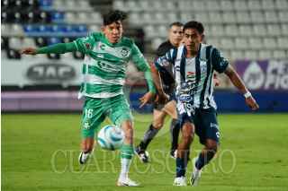 PACHUCA, HIDALGO, 18SEPTIEMBRE2023.- Jair González de Santos y Elías Montiel de Pachuca durante el encuentro en donde los Tuzos se impusieron 3-2. Partido correspondiente de la jornada 8 de la Liga MX, en el Estadio Hidalgo. FOTO: OSCAR RAMÍREZ/CUARTOSCURO.COM