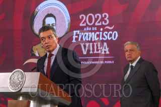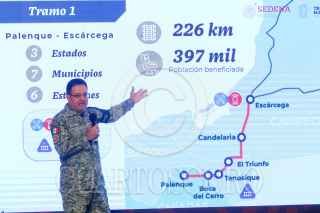 CIUDAD DE MÉXICO, 25SEPTIEMBRE2023.- Óscar David Lozano Águila, director general de Tren Maya, SA de CV., explica los avances del llamado "Jaguar Rodante" en el sureste mexicano. FOTO: MOISÉS PABLO/CUARTOSCURO.COM