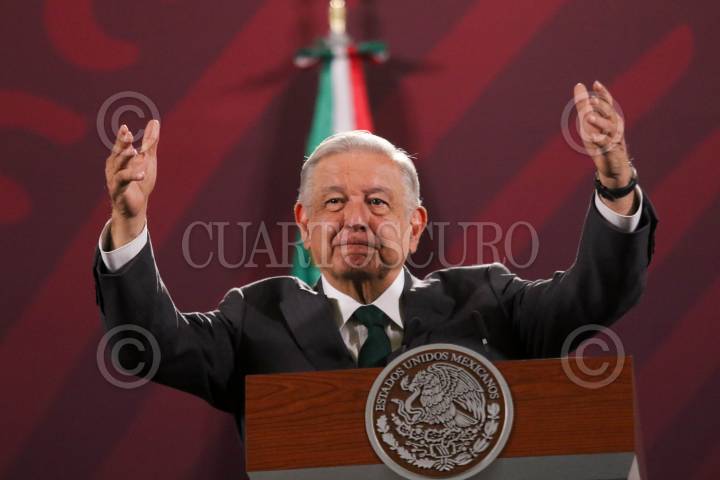 CIUDAD DE MÉXICO, 25SEPTIEMBRE2023.- Andrés Manuel López Obrador, Presidente de México, habló sobre las supuestas disputas del crimen organizado en la zona de Comalapa, Chiapas, también se refirió a.los videos en donde una columna de hombres armados son vitoreados por pobladores, señaló que estos hechos son magníficados por los medios de comunicación, esto durante la mañanera. FOTO: MOISÉS PABLO/CUARTOSCURO.COM