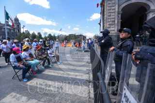 TOLUCA, ESTADO DE MÉXICO, 26SEPTIEMBRE2023.- Mujeres de Haz Valer Mi Libertad a 118 días de plantón frente a Palacio de Gobierno y 18 de huelga de hambre con señales de humo solicitaron una audiencia con la Gobernadora mexiquense Delfina Gómez Álvarez, y ser escuchadas para exponer los casos de sus familiares injustamente presos, ante los oídos sordos del ex gobernador Alfredo del Mazo Maza. FOTO: CRISANTA ESPINOSA AGUILAR /CUARTOSCURO.COM