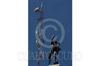 CIUDAD DE MÉXICO, 26SEPTIEMBRE2023.- Una antena de telecomunicaciones en uno de los techos de los edificios del Centro Histórico. FOTO: MOISÉS PABLO/CUARTOSCURO.COM