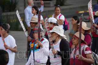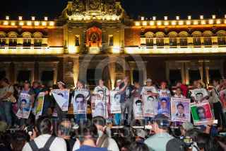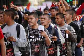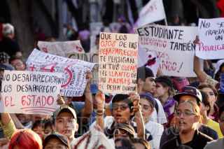 CIUDAD DE MÉXICO, 26SEPTIEMBRE2023.- Tras cumplirse 9 años de la desaparición de los 43 normalistas de Ayotzinapa padres de los jóvenes y simpatizantes marcharon del Ángel de la Independencia rumbo al Zócalo. La exigencia es que el Gobierno federal de con su paradero y castigue a los responsables. FOTO: ELIZABETH RUIZ/CUARTOSCURO.COM