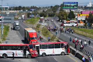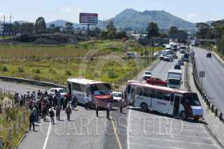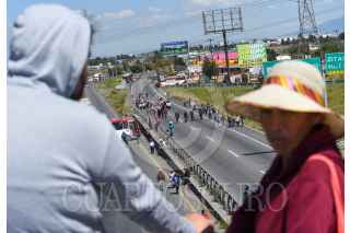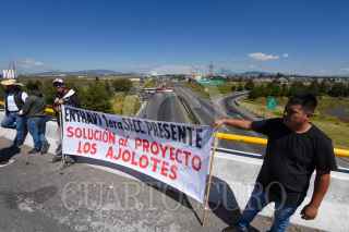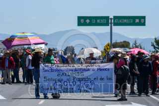 TOLUCA, ESTADO DE MÉXICO, 27SEPTIEMBRE2023.- Por segunda ocasión pobladores de diversas comunidades de Temoaya bloquearon la carretera Toluca-Atlacomulco y Trébol del Libramiento Bicentenario Toluca-Valle de Bravo exigiendo que sea solucionado el Proyecto “Ajolotes” y un alto a la tala clandestina que se registra en la zona; esperan entablar un diálogo con autoridades federales y solucionar este problema que ya tiene más de 16 años. FOTO: CRISANTA ESPINOSA AGUILAR /CUARTOSCURO.COM