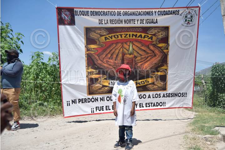 IGUALA, GUERRERO, 27SEPTIEMBRE2023.- Normalistas rurales de Ayotzinapa y de la Federación de Estudiantes Campesinos Socialistas de México (FECSM) utilizaron un tráiler para abrir las reforzadas puertas del Palacio de Justicia de Iguala, al que lanzaron piedras y prendieron fuego, en represalia por ocultar información relacionada con los ataques del 26 de septiembre de 2014. La actividad se desarrolló después de que terminara el mitin realizado por los 9 años de los ataques perpetrados por sicarios de Guerreros Unidos (GU), así como elementos de diferentes corporaciones policíacas. El contingente de normalistas llegó a bordo de 24 autobuses, que salieron pasado el mediodía de la cabecera municipal de Tixtla, en la región Centro hasta llegar a la cina de la bandera nacional. Los normalistas colocaron ofrendas florales en las estelas de luz, donde fueron asesinados a balazos sus compañeros Julio César Ramírez Nava y Daniel Solís Gallardo. FOTO: DASSAEV TÉLLEZ ADAME/CUARTOSCURO.COM