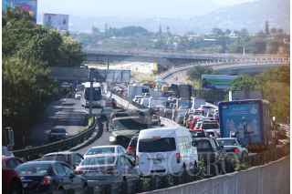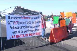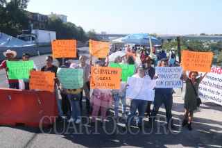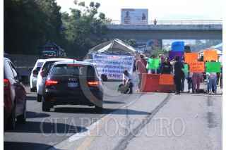 CUERNAVACA, MORELOS, 28SEPTIEMBRE2023.- Ejidatarios del poblado de Chipitlan bloquean parcialmente el carril sur de la autopista Cuernavaca-Acapulco, exigen que la Secretaria de Infraestructura, Comunicaciones y Transporte (SICT) pague la indemnización por los terrenos que invadió para ampliar el Paso Exprés en el año 2015. Los afectados son más de 120 ejidatarios los cuales piden a la SICT que cumpla el convenio de ocupación firmado hace 8 años. El bloqueo, aun cuando es parcial, afecta al tráfico, el cual avanza lentamente hasta superarlo. FOTO: MARGARITO PÉREZ RETANA / CUARTOSCURO.COM