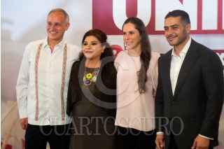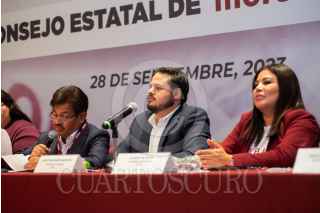 CIUDAD DE MÉXICO, 28SEPTIEMBRE2023.- Sebastián Ramírez, dirigente nacional de Morena, y Francisco Chíguil, consejero estatal de Morena, anunciaron que por unanimidad Morena eligió a Hugo López-Gatell, Clara Brugada, Omar Harfuch, y Mariana Boy, como sus precandidatos para encabezar la Coordinación de la Defensa de la Cuarta Transformación en la Ciudad de México, esto durante su consejo. FOTO: MORENA CDMX/CUARTOSCURO.COM