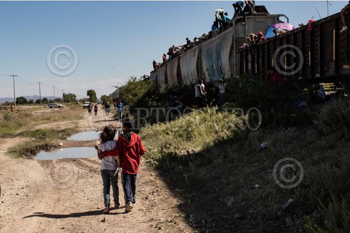 GENERAL ENRIQUE ESTRADA, ZACATECAS, 29SEPTIEMBRE2023.- Alrededor de mil quinientas personas entre niños, mujeres y hombres, todos migrantes de diferentes países como Venezuela, Colombia, Nicaragua, El Salvador, Angola, entre otros; fueron abandonados a su suerte por la empresa Ferromex, al dejar los vagones sobre las vias en medio de campos de cultivo, muy cerca de la comunidad de Miguel Hidalgo, un lugar despoblado en donde los viajantes no tienen posibilidad de conseguir alimentos o agua. Los migrantes informaron que desde la madrugada se detuvo la llamada "Bestia" y elementos del Instituto Nacional de Migración, en compañia de Guardia Nacional, los intimidaron para que bajaran de los vagones, ante su negativa 20 de ellos fueron detenidos. Tras subir de tono el altercado los agentes del INM le pidieron al maquinista del tren desenganchar la máquina para dejarlos a su suerte. Durante el día ciudadanos solidarios estuvieron proporcionandoles alimentos y agua en lo que hallaban otra alternativa de continuar con su viaje hacia los Estados Unidos. FOTO: ADOLFO VLADIMIR /CUARTOSCURO.COM