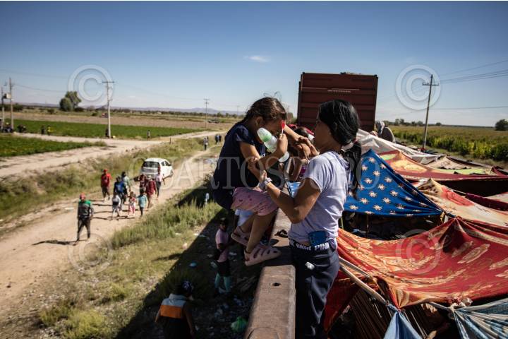 GENERAL ENRIQUE ESTRADA, ZACATECAS, 29SEPTIEMBRE2023.- Alrededor de mil quinientas personas entre niños, mujeres y hombres, todos migrantes de diferentes países como Venezuela, Colombia, Nicaragua, El Salvador, Angola, entre otros; fueron abandonados a su suerte por la empresa Ferromex, al dejar los vagones sobre las vias en medio de campos de cultivo, muy cerca de la comunidad de Miguel Hidalgo, un lugar despoblado en donde los viajantes no tienen posibilidad de conseguir alimentos o agua. Los migrantes informaron que desde la madrugada se detuvo la llamada "Bestia" y elementos del Instituto Nacional de Migración, en compañia de Guardia Nacional, los intimidaron para que bajaran de los vagones, ante su negativa 20 de ellos fueron detenidos. Tras subir de tono el altercado los agentes del INM le pidieron al maquinista del tren desenganchar la máquina para dejarlos a su suerte. Durante el día ciudadanos solidarios estuvieron proporcionandoles alimentos y agua en lo que hallaban otra alternativa de continuar con su viaje hacia los Estados Unidos. FOTO: ADOLFO VLADIMIR /CUARTOSCURO.COM
