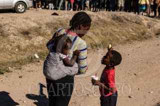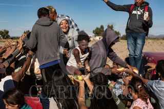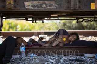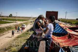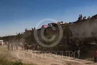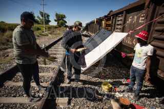 GENERAL ENRIQUE ESTRADA, ZACATECAS, 29SEPTIEMBRE2023.- Alrededor de mil quinientas personas entre niños, mujeres y hombres, todos migrantes de diferentes países como Venezuela, Colombia, Nicaragua, El Salvador, Angola, entre otros; fueron abandonados a su suerte por la empresa Ferromex, al dejar los vagones sobre las vias en medio de campos de cultivo, muy cerca de la comunidad de Miguel Hidalgo, un lugar despoblado en donde los viajantes no tienen posibilidad de conseguir alimentos o agua. Los migrantes informaron que desde la madrugada se detuvo la llamada "Bestia" y elementos del Instituto Nacional de Migración, en compañia de Guardia Nacional, los intimidaron para que bajaran de los vagones, ante su negativa 20 de ellos fueron detenidos. Tras subir de tono el altercado los agentes del INM le pidieron al maquinista del tren desenganchar la máquina para dejarlos a su suerte. Durante el día ciudadanos solidarios estuvieron proporcionandoles alimentos y agua en lo que hallaban otra alternativa de continuar con su viaje hacia los Estados Unidos. FOTO: ADOLFO VLADIMIR /CUARTOSCURO.COM