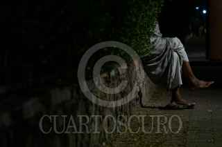 MARRAKECH, MARRUECOS, 29SEPTIEMBRE2023.- Las piernas de un habitante de Marrakech que descansa en una de las bardas de la Avenida Mohhamed V sobresalen durante la noche al paso de los peatones. FOTO: GALO CAÑAS/CUARTOSCURO.COM