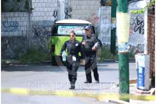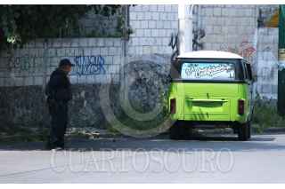 CUERNAVACA, MORELOS, 30SEPTIEMBRE2023.- Un policía municipal vigila una escena de crimen donde un hombre que se encontraba en su combi fue asesinado a tiros. El hecho ocurrió pasado el mediodía en la calle Mariano Matamoros de la colonia Lagunilla, donde un hombre que estaba dentro una combi color verde con toldo gris fue atacado a balazos quedando en el asiento de copiloto. Un policía municipal impidió al fotógrafo realizar su trabajo y con intimidaciones fue retirado del sitio. FOTO: MARGARITO PÉREZ RETANA / CUARTOSCURO.COM