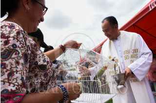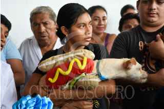 CAMPECHE, CAMPECHE, 30SEPTIEMBRE 2023.- Fieles católicos del barrio de san francisco en Campeche acudieron a la iglesia del mismo nombre a la bendición de mascotas como cada año lo marca la tradición en los festejos del patrono de los animales San Francisco de Asís. Algunos no dejaron pasar la tradición llevando los retratos o cenizas de su fiel amigo. FOTO: MICHAEL BALAM/CUARTOSCURO.COM
