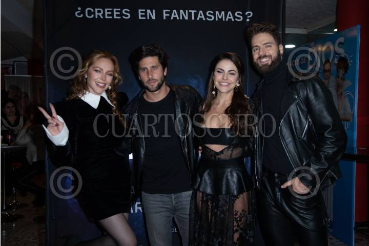CIUDAD DE MÉXICO, 30SEPTIEMBRE2023.- Erika de la Rosa, Diego Klein, Alejandra Ambrosi y Jorge Losa a su paso por la alfombra roja por el estreno de la puesta en escena "2:22 Uan historia paranormal", que se llevó a cabo en el Teatro Xola. FOTO: EDGAR NEGRETE LIRA/CUARTOSCURO.COM
