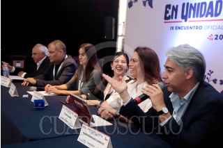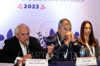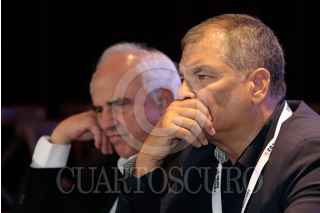 PUEBLA, PUEBLA, 01OCTUBRE2023.- Rafael Correa, ex presidente de Ecuador, integrante del Grupo de Puebla, durante la clausura del IX Encuentro del Grupo Puebla, que lleva por nombre "En unidad avanzamos", celebrado en el Museo Internacional del Barroco. FOTO: MIREYA NOVO/CUARTOSCURO.COM