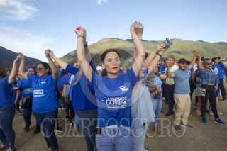 SANTIAGO, NUEVO LEÓN, 01OCTUBRE2023.- La Asociación Civil Agua Regia, acudió a la Presa de la Boca para manifestarse por su inconformidad con el rumbo actual de la crisis hídrica en Nuevo León y exigir soluciones sostenibles para la protección del agua y detener la extracción del último 10? la extracción de la Presa de la Boca. Juan Ignacio Barragán, director de Agua y Drenaje de Nuevo León aclaró que de no registrarse lluvias, la Presa estaría seca a mediados de octubre de 2023. FOTO: GABRIELA PÉREZ MONTIEL / CUARTOSCURO.COM