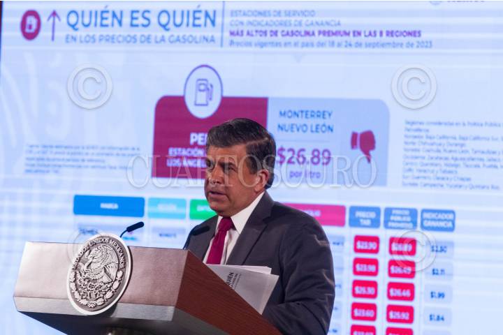 CIUDAD DE MÉXICO, 02OCTUBRE2023.- Ricardo Sheffield Padilla, titular de Profeco, deja su cargo para buscar la gubernatura de Guanajuato por Morena, el día de hoy dio su último reporte del ¿Quién es quién?, durante la mañanera. FOTO: MOISÉS PABLO/CUARTOSCURO.COM