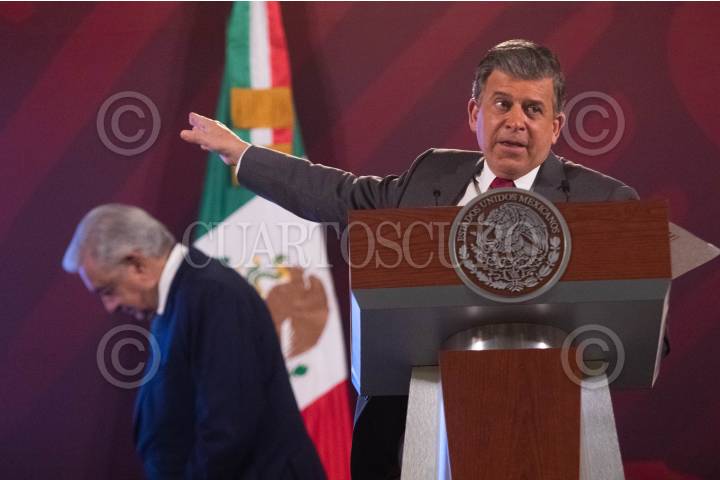 CIUDAD DE MÉXICO, 02OCTUBRE2023.- Ricardo Sheffield Padilla, titular de Profeco, deja su cargo para buscar la gubernatura de Guanajuato por Morena, el día de hoy dio su último reporte del ¿Quién es quién?, durante la mañanera. FOTO: MOISÉS PABLO/CUARTOSCURO.COM