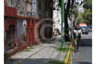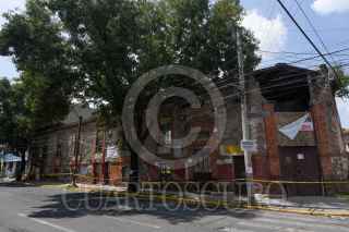 TOLUCA, ESTADO DE MÉXICO, 03OCTUBRE2023.- Vecinos de la Colonia 5 de Mayo en la zona centro de Toluca se encuentran preocupados ante el riesgo que representa la fachada de un edificio que se encuentra en la calle de Alexander Von Humboldt y la cual se encuentra protegido por el INAH; este fin de semana se derrumbó una parte de la fachada y temen por su seguridad, hace un año un hombre murió al caerle parte de esta fachada mientras se encontraba comiendo a un costado de esta fachada. Es un riesgo constante para los vecinos, transeúntes y automovilistas, hacen un llamado a las autoridades municipales, estatales y federales para que se haga algo y no cobre más víctimas estos edificios viejos a los cuales no se les ha dado ningún mantenimiento o trabajo de preservación. FOTO: CRISANTA ESPINOSA AGUILAR /CUARTOSCURO.COM