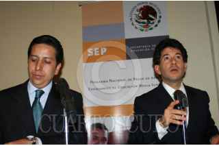 MÉXICO D.F. 17MAYO2007.- Miguel Székely Pardo, subsecretarío de educación media superior, acompañado de Áyax Carranza Segura, director general de comunicación social de la SEP, ofrecieron una conferencia para dar a conocer el plan nacional de becas para 120, 000 alumnos del nivel medio superior en nuestro país. FOTO: GUILLERMO MARTÍNEZ/CUARTOSCURO.COM